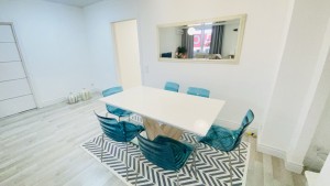 Огромная кухня- студия, занимающая четверть квартиры: место для семейных завтраков и гостевых праздников, игр с детьми и даже танцeв.