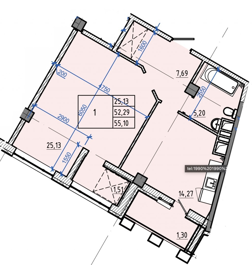 Загальна площа: 55.1 кв.м