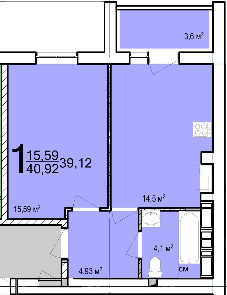 Загальна площа: 41 кв.м