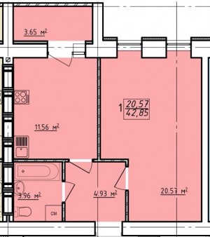 Загальна площа - 43 м²;