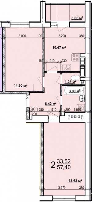Загальна площа: 57 кв.м