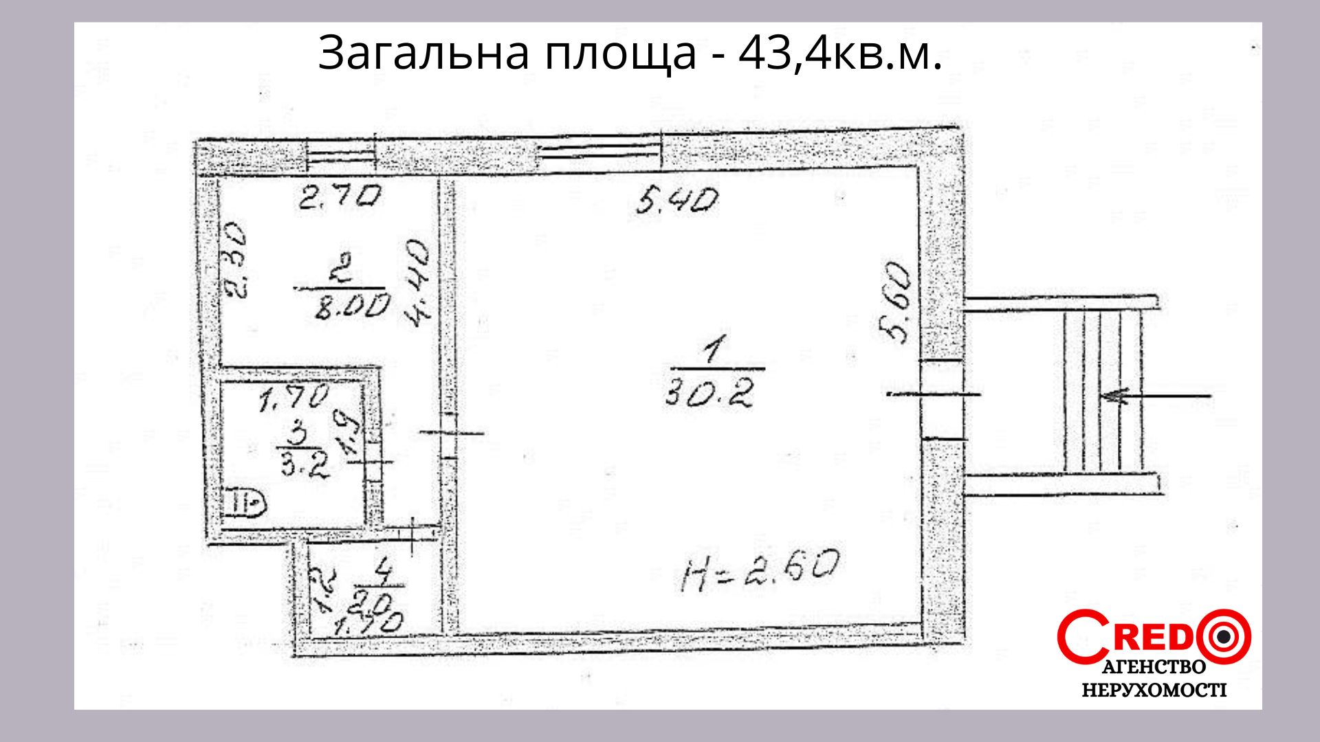 Загальна площа: 43 кв.м