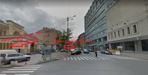 Будівля знаходиться в центральній частині Києва, на жвавій вулиці Шота Руставелі;