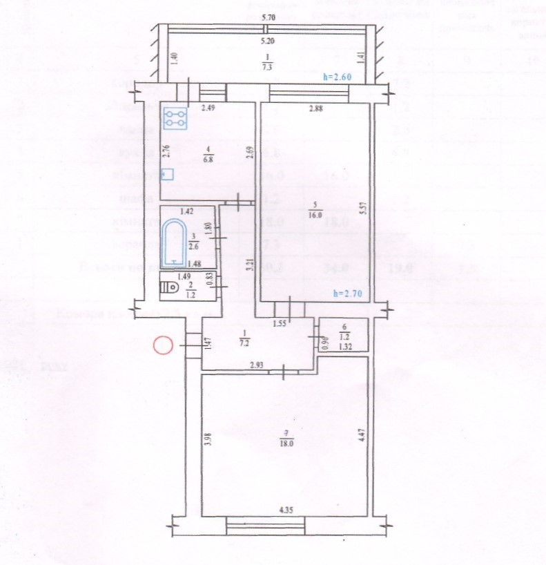 Характеристика квартири: - загальна площа 60,3 м2; - житлова площа 34,0 м2 (кімнати окремі 18 м2+ 16 м2); - кухня 6,8 м2; - лоджія 7,3 м2 ; - 1 поверх в 4 поверховому будинку, не кутова; - висота стелі Н= 2, 7 м, перекриття з/б; - є підвал Комунікації: - централізовані; - лічильники на воду, світло, газ. Стан: - вікна м/п - ремонту 5-7 років