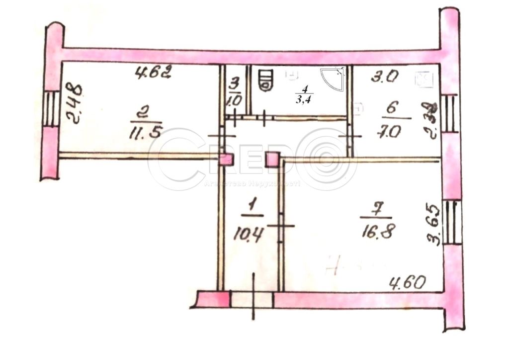 - кімнати: 16,8 + 11,5 м.кв.