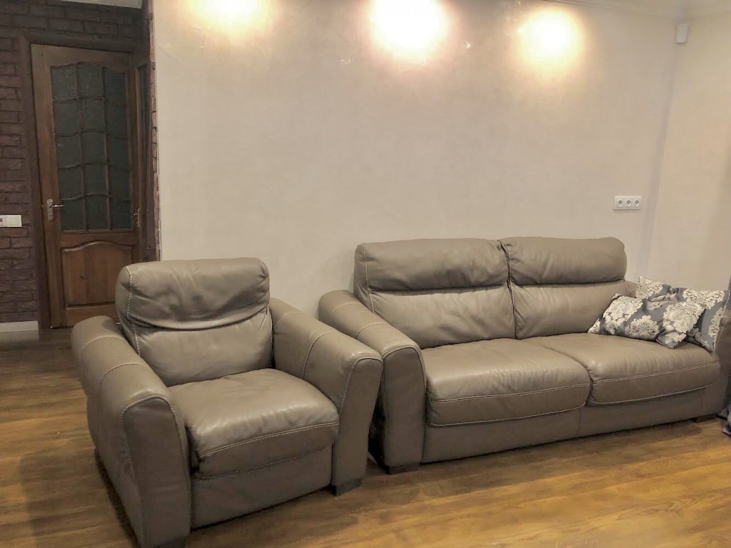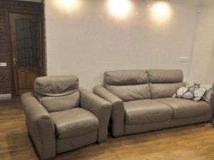 Мебель: в зале итальянский диван, а также раскладное Релакс-кресло телячьей кожи,