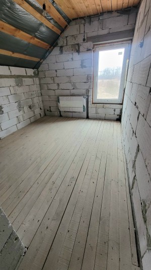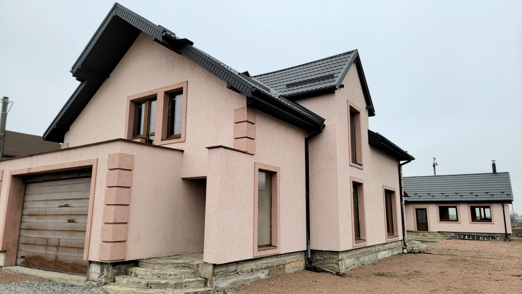 Новобудова, 200/100/50м, на першому поверсі гараж, с/в та велика кухня- вітальня, є вихід на терасу, на другому поверсі- 4 окремих кімнати, с/в та гардероб. Скважина 52м, криниця, вигрібна яма (бочка на 5 куб). Є електрокотел (Німеччина), твердопаливний котел (Чехія), система підігріву від сонячних батарей, енергозберігаючі ємкості для гарячої води, мп вікна 88 профіль, будівельні матеріали залишаються. Є гостьвий домік з усіма комунікаціями і банею. Фундамент під барбекю з водою і каналізацією. Бетонний фундамент під забор по всьому перемитру. Погріб кам'яний. Залишились внутрішні роботи. Будинок будували для себе, якісно і добротно. До центра Житомира 20км. Ділянка землі оброблена, є молодий садок.