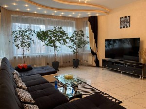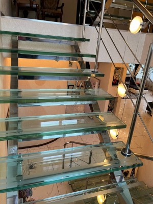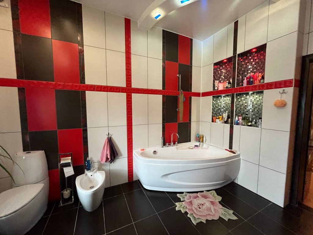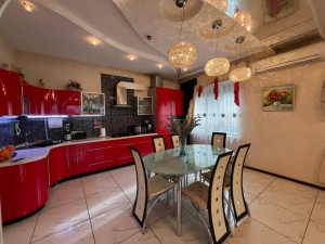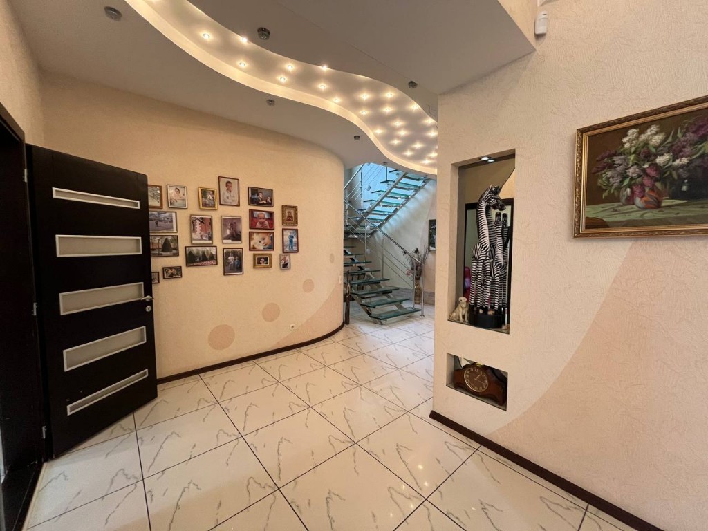 Состояние дома превосходное, авторский дизайн, оригинальная стеклянная лестница с высокопрочного многослойного стекла создает особый колорит в интерьере и визуально совершенно не забирает жилищное пространство. Великолепно выполнено освещение и подсветки всех комнат, что гармонично подчеркивает их дорогое убранство и создает комфорт и уют. Климат в доме регулируется кондиционерами, отопление осуществляется двумя двухконтурными газовыми котлами, теплый пол, есть все коммуникации, в том числе и городская канализация и Интернет. Дом оборудован охранной сигнализацией и камерами видеонаблюдения по всему периметру двора.