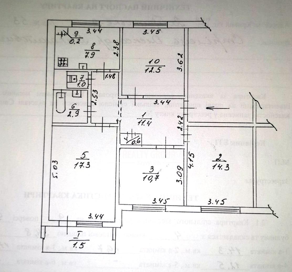 3 кімн., площа 56/36/6, поверх 2/9