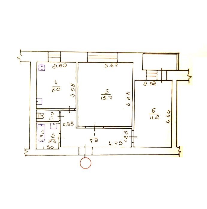 3 кімн., площа 60/38/8, поверх 4/5