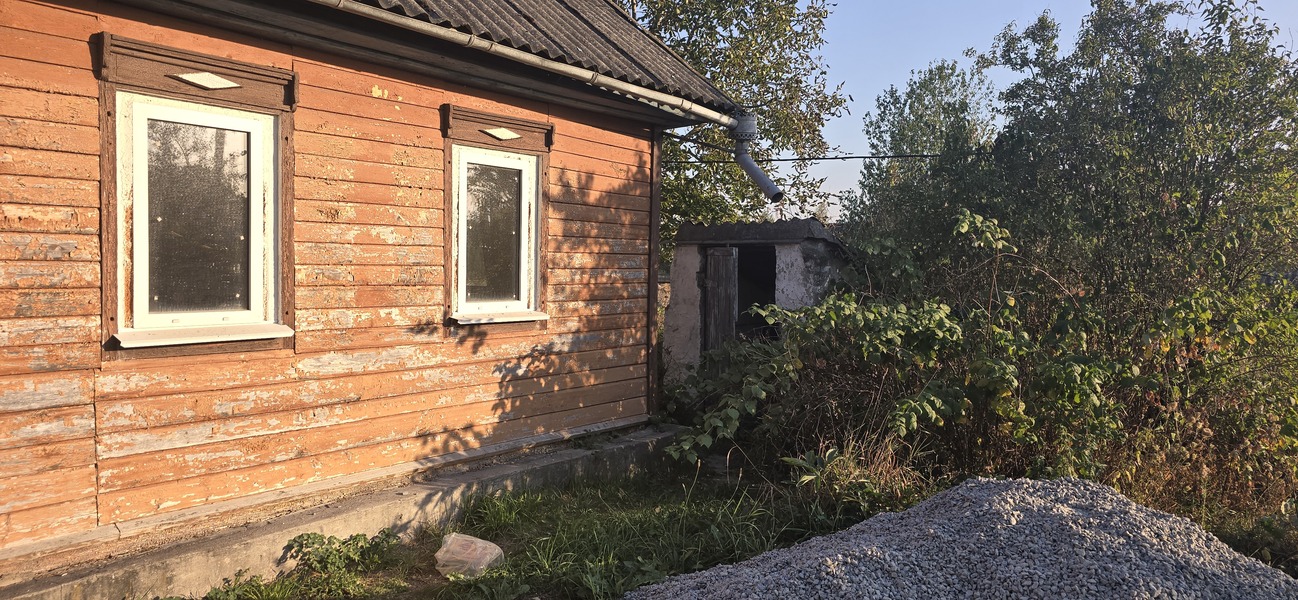 Продається 2/3 житлового будинку 10км від Житомира, на початку с.Садки, Житомирського району. Загальна площа 66м.кв., 2 земельні ділянки 7,5+24,2 сотки приватизованої землі. Нова узаконена прибудова коридор-4м.кв., санвузол-5,6м.кв. (залишилось тільки встановити сантехніку), кухня-15,3м.кв., гостьова 12,3м.кв., та 2 кімнати в дерев'яній частині 13+16м.кв.. Вода заведена в будинок, є криниця, вигрібна яма, світло 3 фази, поряд газ, грубки. В будинку зроблений ремонт, залишаються кухонні меблі. Окреме велике подвір'я, погріб, капітальний сарай на 2 секції, асфальтований під'їзд. Поряд проходить автобус, до АТБ 5 хвилин пішки. Документи готові до оформлення.