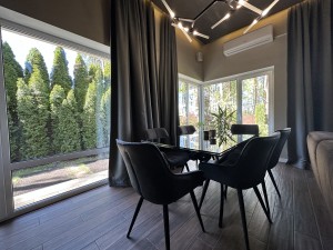 Планування: 4 кімнати (3 спальні + кабінет), кухня-вітальня з каміном, 2 с/в, гардероб, підсобне приміщення, тераса, зона барбекю